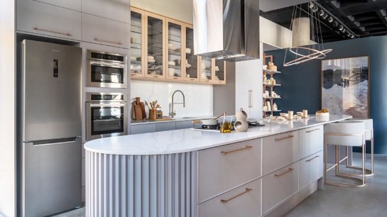 É tendência a composição de espaços abertos e integrados, que criem uma cozinha mais aconchegante e favoreçam a interação entre as pessoas. Portanto, deixe para trás aquela ideia de ter uma ilha gigante ou bancadas enormes, pois a procura atual é por cozinhas sob medida, que possibilitem a fluidez e devolvam a sensação de acolhimento e conforto ao ambiente. Uma ideia é apostar no uso de prateleiras estilizadas, no lugar de armários superiores fechados, e em ilhas orgânicas, com os cantos arredondados.