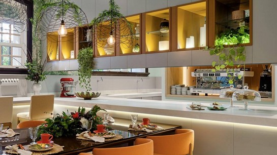 Na criação de um ambiente perfeito para a sua cozinha, é preciso usar e abusar da tecnologia. Além de fazer uso da iluminação convencional é essencial explorar técnicas de iluminação criativa. Apostar na instalação de luminárias pendentes ou fitas de led embutidas no teto, armários, prateleiras e bancadas, irá criar uma atmosfera acolhedora e sofisticada, além de destacar elementos específicos, como bancadas de mármore ou utensílios de alta qualidade.
