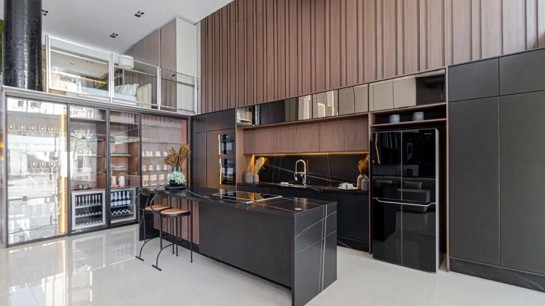 Otimizar a ilha com eletrodomésticos embutidos facilita o dia a dia.