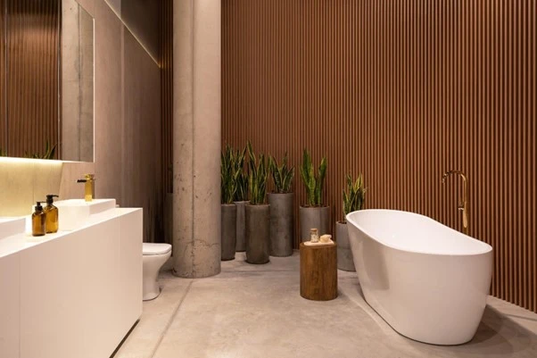 Um banheiro bem planejado e moderno, enfatizando a organização e o design elegante.