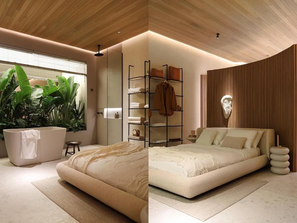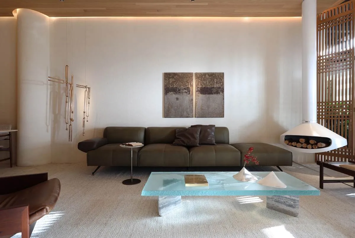 Natureza e design se fundem em plenitude em um espaço Wabi-sabi.