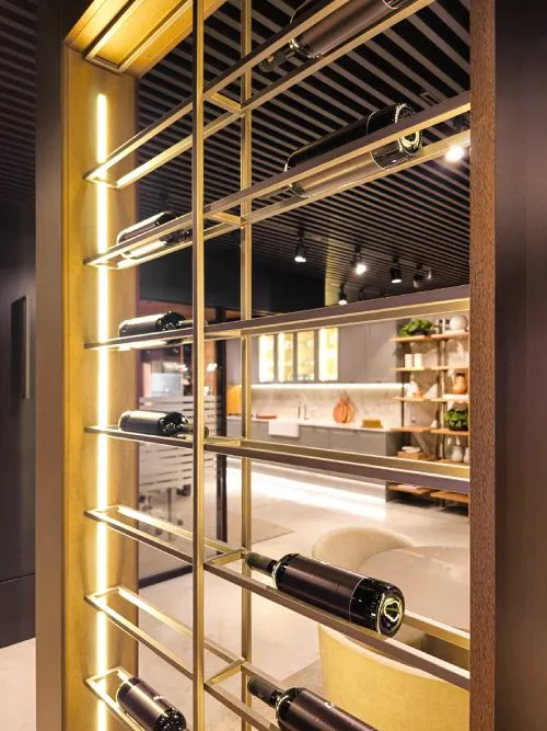 A Criare vai além e redefine o conceito de adegas de vinhos, elevando garrafas a objetos de exibição. A escolha por estrutura metálica, iluminada de maneira estratégica, não só guarda os vinhos, mas os apresenta com a dignidade de uma coleção de arte, integrando a cultura da enologia com um design contemporâneo que não deixa de lado a sofisticação.