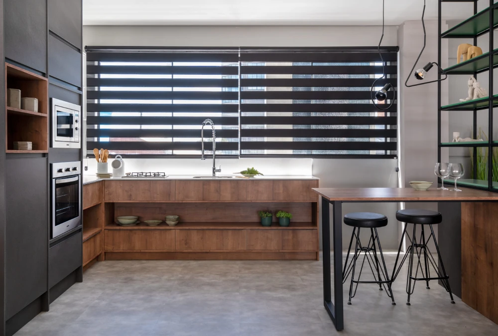 Caso 1: Cozinha moderna com iluminação natural e artificial