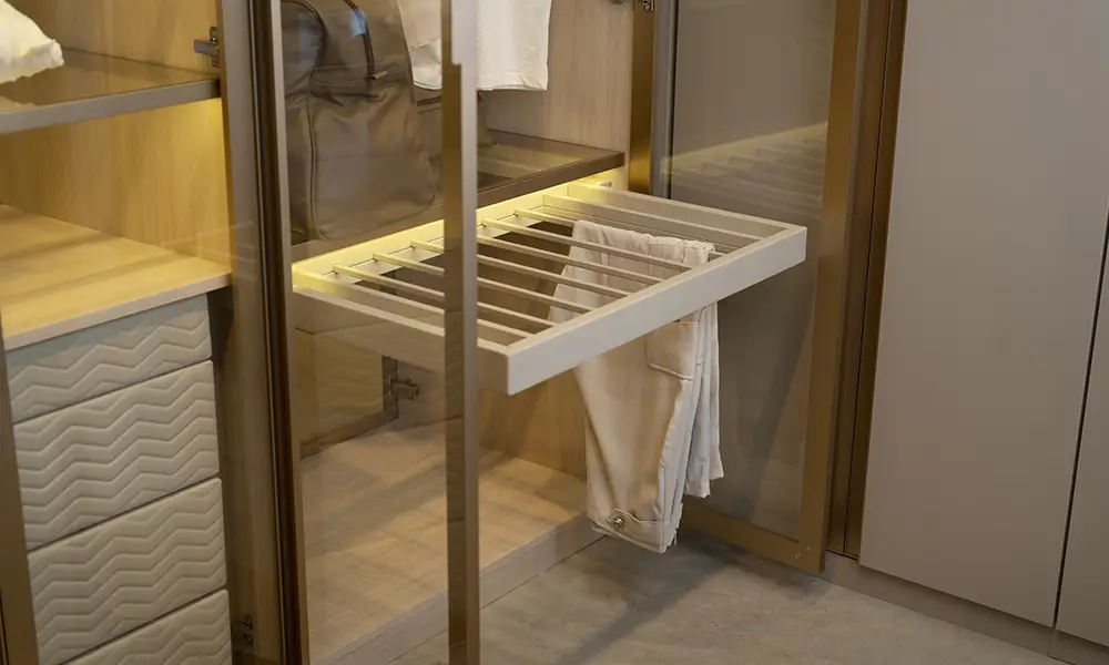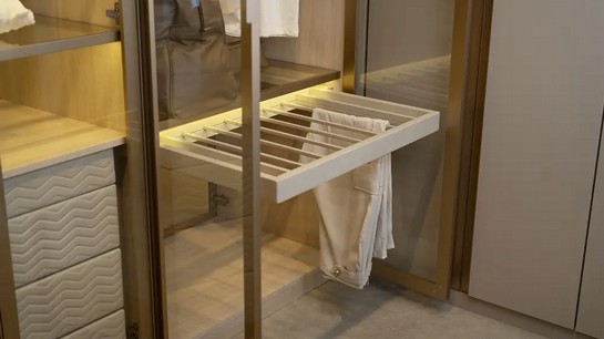 São muito utilizados em closets masculinos ou em projetos com grande volume de calças, contribuindo para melhor aproveitamento do espaço e para a conservação das roupas.